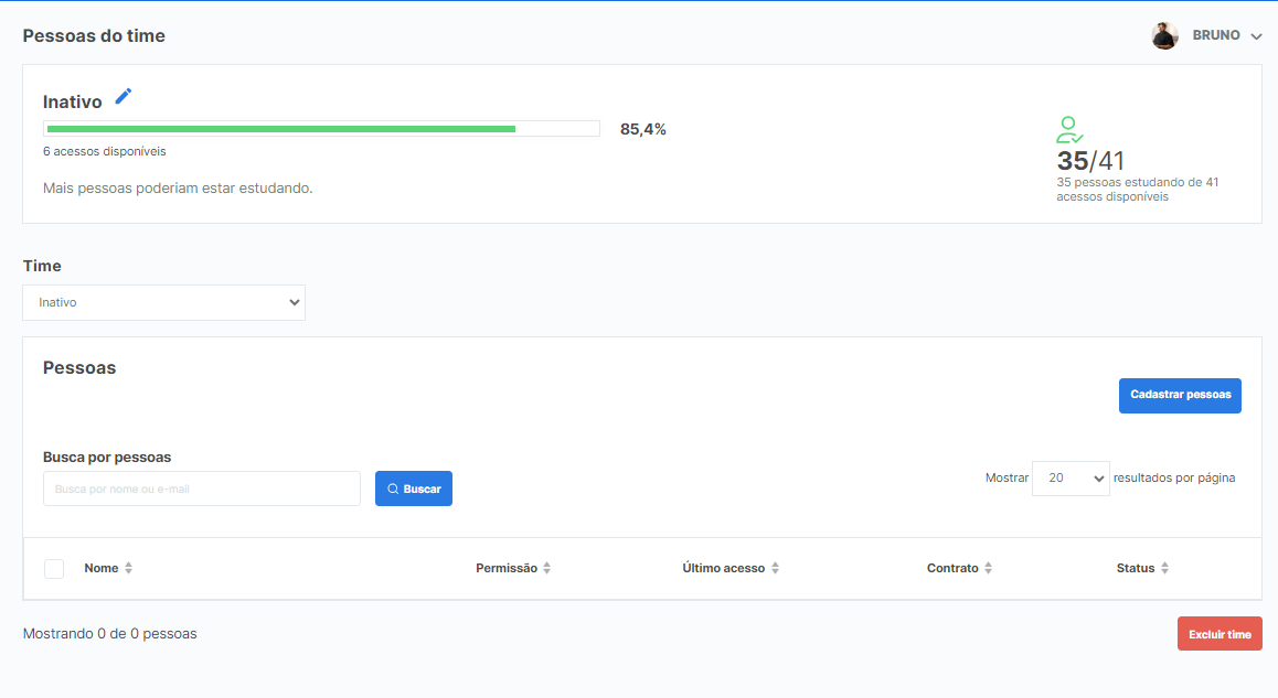 Importante: se houver planos de estudos vinculados ao time, é necessário os transferir para outro time antes de realizar a exclusão. Pois ao excluir um time, você também exclui os planos de estudos vinculados a ele.