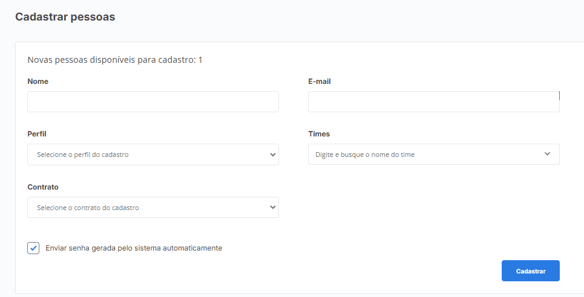 2) Para adicionar uma nova pessoa colaboradora, selecione “Cadastrar pessoas”.