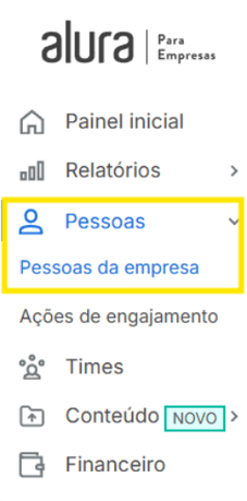 1) No painel de gestão, clique em “Pessoas” e depois em “Pessoas da empresa”.