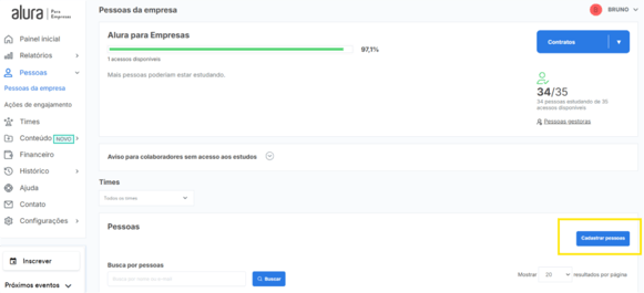 Dica: Nessa página, é possível visualizar tanto a quantidade de pessoas já cadastradas quanto o número de licenças disponíveis na empresa.