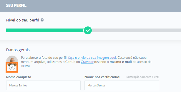 É possível adicionar uma foto sua na conta da Alura! Além de ser super bacana customizar a sua página, a foto de perfil é importante, pois ela estará nos seus certificados.