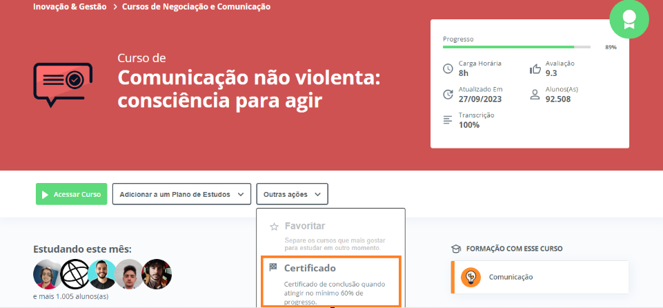 2. Os certificados também podem ser emitidos a partir de 60% do aproveitamento do curso.