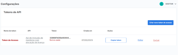 Importante: cada token concede acesso somente à API selecionada no momento da criação, e não a todas as APIs disponíveis.